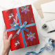 Papel De Presente Luxe Red Christmas with Silver Reindeer