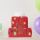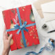 Adicione um toque de alegria festiva ao seu presente embrulhando com este belo papel vermelho e ouro pendurado. Apresentando um delicado padrão de luzes e elementos florais pendurados em um fundo vermelho vibrante, este papel é perfeito para adicionar um toque de cintilação a qualquer presente.