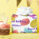 Este design colorido apresenta um padrão de cookies macaron sobre um fundo branco. Você pode usá-lo na maioria das vezes, especialmente para o amante de biscoitos em sua vida. Personalize a mensagem modelo, remova o texto ou clique em personalizar para selecionar um estilo de fonte, tamanho e cor preferidos.