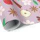 "Maçãs, canela, flores, papel de enrolamento sem costura de anis estrelado" oferece um padrão uniforme de maçãs, canela, anis estrelado e flores, perfeito para embrulhar presentes com um toque quente de outono.