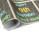 Este divertido design de papel embrulhado com tema de aniversário apresenta uma mensagem como "FELIZ 9º ANIVERSÁRIO, PRIMEIRO NOME!", onde o nome pode ser personalizado. O fundo apresenta um padrão de aparência rústico, castanho e falso em grãos de madeira. O texto da mensagem personalizada apresenta cores como azul, amarelo e verde, e tem uma aparência inspirada pela das letras pintadas e estêncilhadas. Um papel de embrulho como este poderia talvez ser usado no embrulho de presentes de aniversário que estão sendo dados a alguém que está comemorando seu nono aniversário. [~Z0000293]