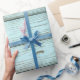 Papel De Presente Madeira Retro-Rústica Turquesa