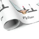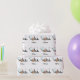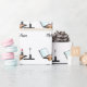 Este papel de empacotamento apresenta a ilustração de um conjunto de maquiagem de Destei. O conjunto de maquiagem inclui rímel preto, batom vermelho, pincel de maquilhagem e pó com espelho. Sob a imagem, há uma área de texto personalizável para um nome.