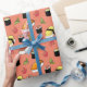 Um papel de embrulho de presente que te fará passar fome só de olhar para ele! Ele apresenta diferentes tipos de sushi, como tamago nigiri e pepino maki (yum!). À volta do sushi há wasabi estilizado e gengibre, porque nenhuma refeição de sushi está completa sem ela.
