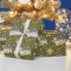 Um cão Malamute do estilo cartoon centrado no fundo da coroa de Natal.