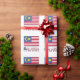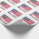A bandeira da Malásia tem catorze faixas, sete vermelhas e sete brancas. Elas se alternam. Há uma área azul no quadrante superior esquerdo com uma lua crescente e a Bintang Persekutuan, uma estrela de catorze pontas. Abaixo da bandeira está a palavra MALÁSIA nas cores da bandeira. Compartilhe seu patrimônio com este papel de embrulho de presente.