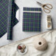 Embrulhar com o tartan para Clan Malcolm e suas sebes, incluindo Callum e Malcolmson. Padrão de xadrez escocesa azul-escuro e verde florestal de 1850, com sotaques vermelhos, azuis-claros e amarelos.