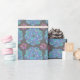 padrão de mandala de flor em estilo geométrico em tons de azul e roxo