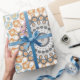 Mandala moderna em laranja e azul (Reflexões no tempo) Um elegante e decorativo estilo boêmico abstrato mandala design ... lindo padrão de flores caleidoscópicas em uma paleta de cores surpreendentes de cinzas profundas, laranja escuro, amarelo ouro e azul denim esmaecido com acentos de branco brilhante.