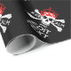 Um tema personalizado MANTENHA CALMA E seu texto em um crânio cruzado de preto. Edite facilmente os dois campos de texto com seu próprio ditado criativo. Esta declaração de design humorística personalizada não deixa de fazer uma impressão excelente sobre ou fora dos caminhos batidos.