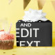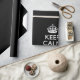 Um preto sólido personalizado no estilo "Manter Calmo e Continuar" dizendo sobre um presente personalizado. Humorístico ou caprichoso experimente suas palavras criativas nas duas linhas editáveis de texto. Lembre-se de usar letras CAPITAL para obter melhores resultados. Use o link "Perguntar a este Designer" para entrar em contato conosco com suas solicitações especiais de design ou para obter assistência com seus projetos de personalização.