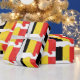 Papel de embrulho Patriótico BELGIANO que mostra o MAPA OUTLINE combinado com a bandeira da BÉLGICA com um efeito gravado. Ideal para comemorações nacionais, Aniversário e Natal, e para qualquer ocasião em que seja necessário um papel de embalagem na moda, patriótico. (A costura é exibida corretamente.)