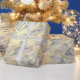 Papel De Presente Marble Champaigne Cinza Dourada Traço de metal azu