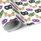 Para Mardi Gras: um impressão de máscaras em verde, roxo, ouro falso, e preto é perfeito para embrulhar presentes. Há etiquetas de presentes correspondentes disponíveis. Dourado não é folha de alumínio nem brilho. Imagem assistida por IA adquirida com uso comercial. Trabalho de arte: DigitalCurio