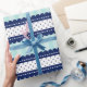 Papel De Presente Marinho Aqua Azul - Stripes E Padrão De Bolinhas