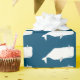 Bonito papel de embrulho com baleias brancas com chapéus de aniversário listrados.