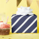 Marinho de papel de embalagem de tiras diagonais estreitas e azuis.