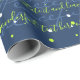Papel de embrulhamento de queda de neve de texto de script personalizado minimalista verde azul na moda
