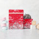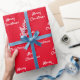 Papel de embrulho elegante, clássico, glamouroso e de festa estilo. Um fundo vermelho decorado com falso confete prateado Texto: Feliz Natal