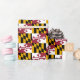 O design preto e dourado na bandeira é o casaco de braços da linha Calvert. Foi concedido a George Calvert como recompensa por ter invadido uma fortificação durante uma batalha (os bares verticais aproximam os bares da palisada). A design vermelha e branca é o casaco dos braços da linha Crossland, a família da mãe de Lord Baltimore, e apresenta uma botânica cruzada com os lados vermelho e branco da cruz alternando. Como a mãe de George Calvert era herdeira, ele tinha o direito de usar ambos os casacos de braços em sua bandeira. É uma das quatro bandeiras estatais dos EUA que não contém a cor azul (as outras três são Alabama, Califórnia e Novo México). É também a única bandeira do Estado norte-americano que se baseia diretamente na heráldica inglesa, embora a bandeira de Washington D.C. seja uma modificação do casaco de armas da família de George Washington.