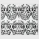 Uma máscara cerimonial com contorno preto. Este design parece realmente eficaz nestes papéis de enrolamento