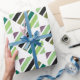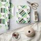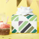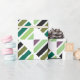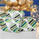 Padrão geométrico linear, retangular, listrado de matizes pretas, roxas e verdes.