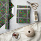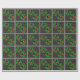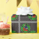Folha de presente de Natal com IconDoÉ a variação original de um personagem de elf de Maxfield Parrish anterior à WWI com leggings de bolinhas Vermelha e Negra de Papai Noel em um círculo verde cinza cercado com a frase repetida "Feliz Natal!" Fundo de branco nas bordas pretas do bolinhas e do tabuleiro de verificação.