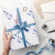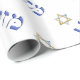 Faça uma declaração na moda com este adorável papel embrulhado em texto azul hebraico sobre fundo branco. Celebre os pequenos triunfos da vida! Perfeito para b'nai mitzvot, casamentos, sopros e aliyot.