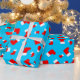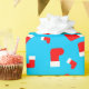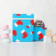 Este papel de embrulho é perfeito para qualquer presente ou artesanato de férias! As meias de Natal vermelhas e brancas, em vários tamanhos e posições, estão espalhadas sobre um fundo azul-céu (ou, mude a cor de fundo como preferir). Festivo e divertido!