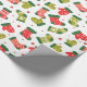Meias vermelhas e verdes e luvas em um padrão de natal divertido. Misturar e combinar com papel de embrulho de presente preto do mesmo design ou com outros acessórios de embrulho de presente do mesmo padrão. Disponível em formatos mate e brilhante