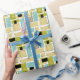 Este robusto papel de embrulho moderno do século do médio apresenta retângulos aqua azuis, abacados verdes, amarelos e abstrato, juntamente com realces de estrelas de estilhaço preto e branco. Adicione uma pop de diversão retrógrada ao seu presente!