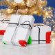Este papel de embrulho tem um design moderno século médio que se parece com um móvel com meio círculo, retângulo inclinado, triângulo, linhas e círculos em vermelho, verde, verde, cor de rosa, laranja e preto.