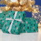 Envolva seus presentes no estilo moderno do meio século retro. Este papel de envolvimento caracteriza o rosa e os carvões e os starbursts no fundo escuro da cerceta. A cor do fundo pode ser mudada - apenas "personalize-a!"
