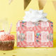 Um delicioso papel de embrulho de chá de fraldas rosa e branco com um balão, um doce guardião para acolher uma menina.