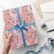 Folhas de Papel de Moldagem Cutie Pie Baby Girl, cor-de-rosa, apresentam pies cerejeiras desenhadas à mão e um padrão de corações cor-de-rosa em um fundo cor-de-rosa quente. Personalize com o nome do bebê. Perfeito para chás de fraldas de outono, primeira Ação de Graças, aniversários de outubro e novembro, aniversários de primeiro aniversário, novos bebês e presentes para novas mães.