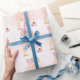 Enfatiza-se bem rosa, menina embrulhando papel-presente