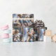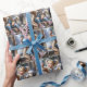 Menina bonita em porquinhos tirando uma selfie de celular com seu cão collie barbudo.