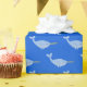 Este incrível papel de embrulho apresenta uma imagem de arte digital de um lindo bebê azul, Narwhal. O corpo principal do Narwhal tem textura áspera e é azul enquanto o ventre é azul de cinza. O Narwhal tem um olho preto com um aluno branco e uma buzina de ouro brilhante no rosto. Também tem cauda delicada e nadadeiras.
