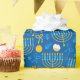 Este papel de embrulho moderno é super fofo! Tem menoratas, sonhos, gelt, cupcakes, arcos e Estrelas de David tudo em azul e ouro. Basta embrulhar todos os presentes! Eles vão ficar fabulosos!
