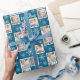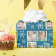This Christmas gift wrapping paper will add a fun personalized touch to your gift giving. The design offers 4 square photo frames and the text: Merry Christmas on a dark blue background. The design is accented with whimsical snowflakes.