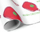 Crisp white background with bright red and green accents