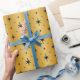 Papel De Presente Metálico antigo Dourado com estrelas azuis Marinho