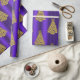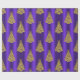 Papel De Presente Metallic Gold Christmas Trees on Purple Christmas