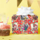 Papel wrappping do floco de neve com espaço para quatro fotos de família favoritas.