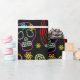 Arte de Linha Alegre e Colorida México Padrão Fiesta, composto por Elementos Típicos como crânios de açúcar, maracas, inca guerreiro, aztec guerreiro, pimenta-do-pirilo, cacto, pirâmide, limão, tequila, sombrero, tacos, camaleão, e alguns elementos florais étnicos e decorativos. Arte vetorial original Copyright BluedarkArt.
