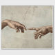 A Criação de Adão pela Pintura Masternote de Michelangelo - A Criação de Adão é uma das pinturas mais famosas do mundo, criada pelo mestre Michelangelo em Roma. A Criação de Adão é um fresco clássico que Michelangelo pintou no Vaticano de Roma, na Capela Sistina, em 1511-1512. A Criação de Adão impressão em nosso presente é uma porção do quadro fresco, mostrando toda a criação do Homem no Livro Bíblico da Gênesis, onde Deus (à direita) dá vida ao primeiro homem, Adam (à esquerda). A pintura mostra o quase toque das mãos, entre Deus e Adão. A imagem é uma pintura crônica do Renascimento. Michelangelo mostra Deus como um velho homem de cabelos brancos e barbudos brancos, vestindo uma longa roupa branca. Tanto Deus como Adão têm os braços estendidos um ao outro, como se Deus estivesse gerando uma faísca de vida no novo homem Adão. A pintura de Michelangeo mostra a semelhança do Homem com Deus, mostrando que Deus criou os humanos em sua própria imagem.