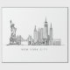 Celebrate the timeless beauty of New York City with this elegant minimalist skyline line art design. Featuring iconic landmarks such as the Statue of Liberty, Brooklyn Bridge, and Manhattan skyscrapers, this clean black-and-white illustration captures the essence of the Big Apple in a modern, sophisticated style.