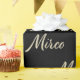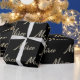 Sehr schönes edles personalisiertes Geschenkpapier im whitegold Lettering Look auf schwarz für Mirco.