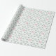 Mistura verde elegante e pinheiro com monograma vermelho em papel branco de embrulho de Natal.