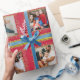Fotos de feriado divertidas, enquadradas em conchas e perdizes. Fotos da família de Natal listradas embrulhando papel de presente em tons de vermelho e verde limão, com pistas de amarelo e branco. Personalize com cinco fotos especiais da sua família ou crianças e sua própria mensagem, lê Feliz Natal da Família Jackson. Desenvolvido exclusivamente pela Sarah Trett.